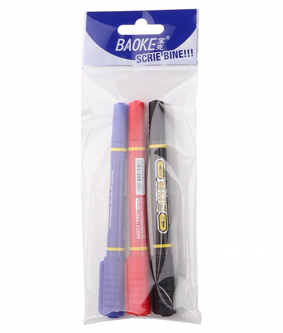 Marker Permanent BAOKE S 3buc in set 2 capete MIXT